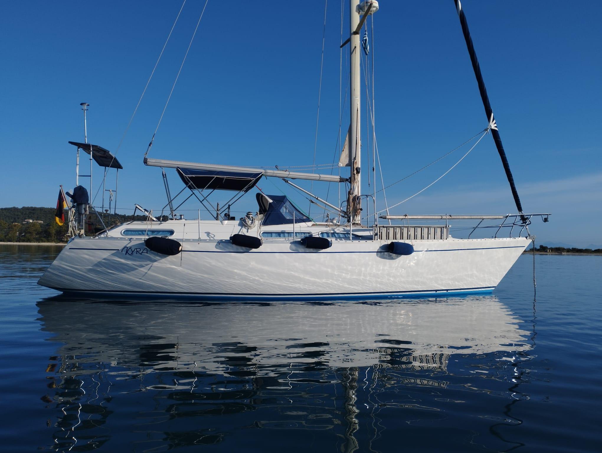 This MOODY 376, built in 1990, is a comfortable, solid cruiser with its central cockpit.