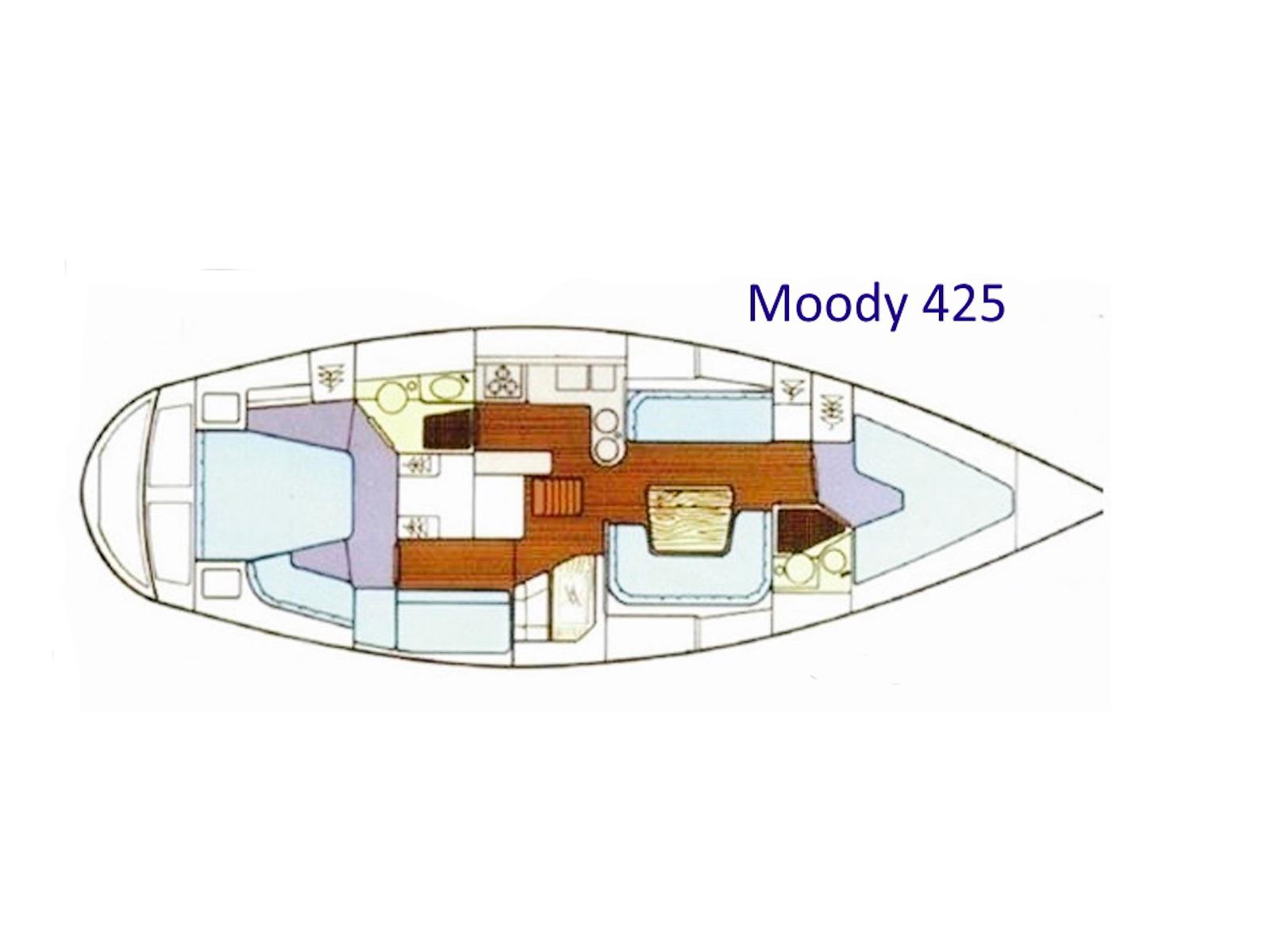 Moody 425 Centre Cockpit ( 1990): A blue water cruiser originally designed by Bill Dixon and manufactured by Marine Projects.