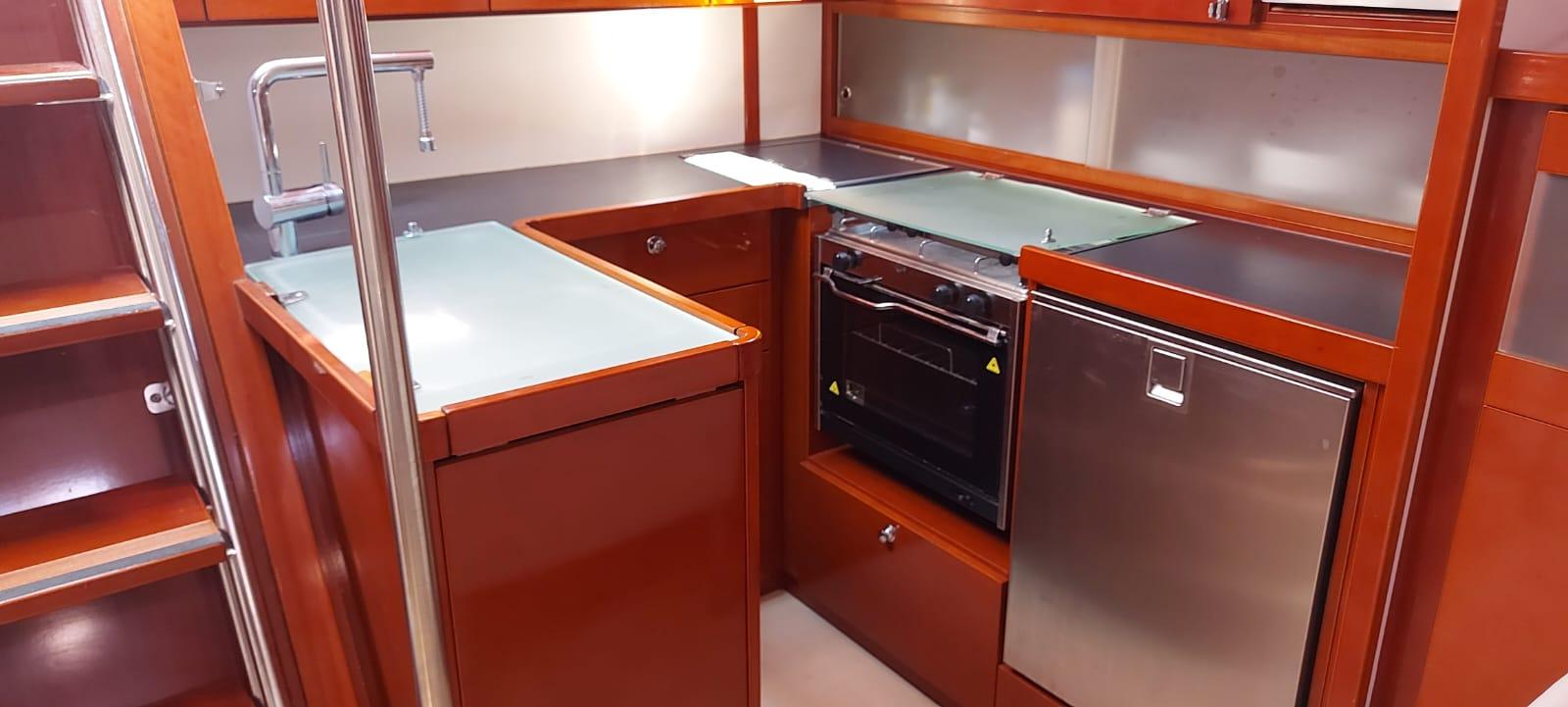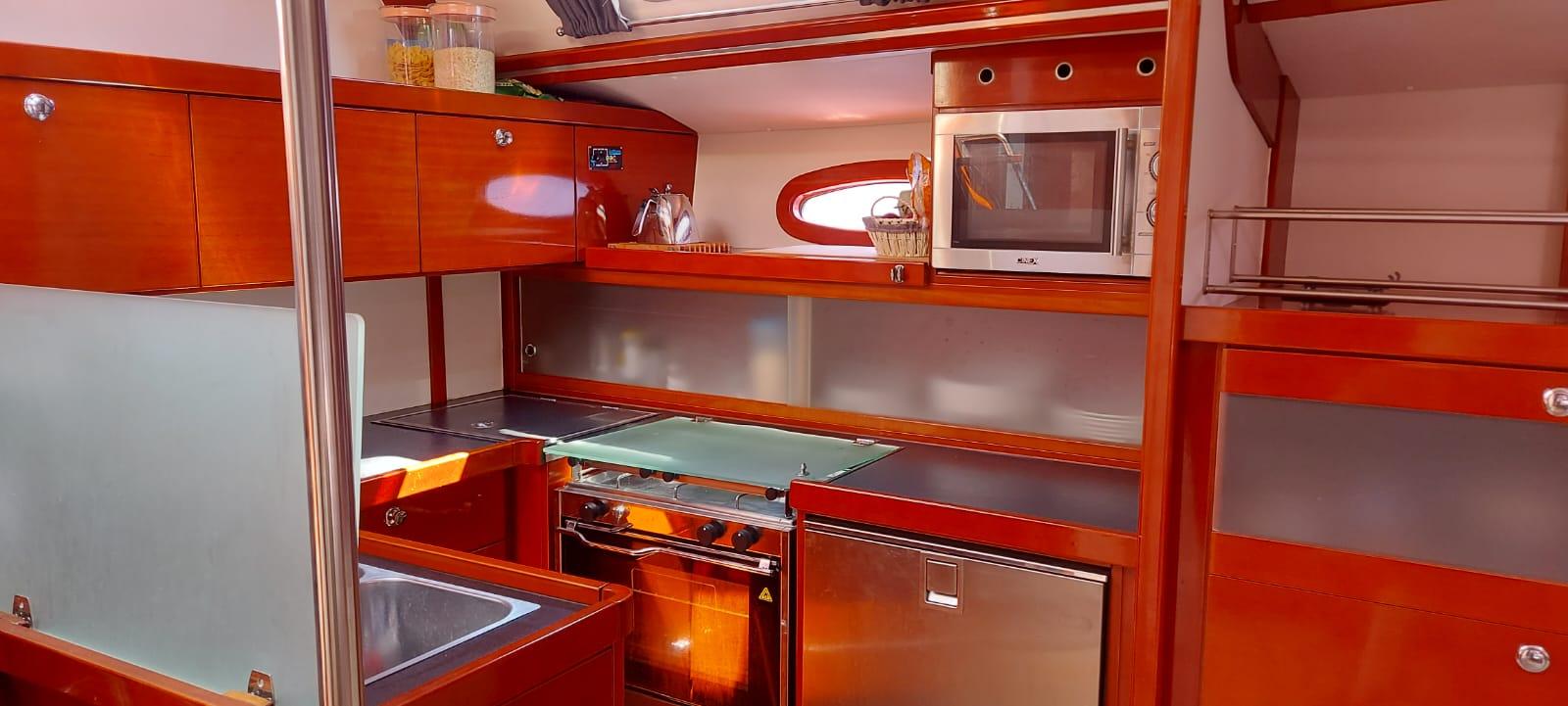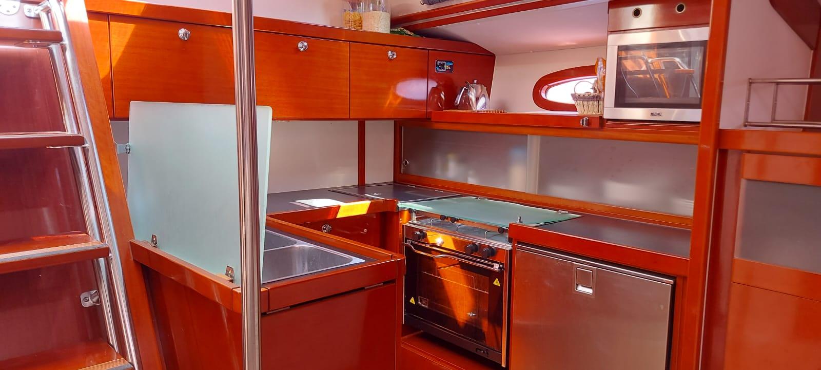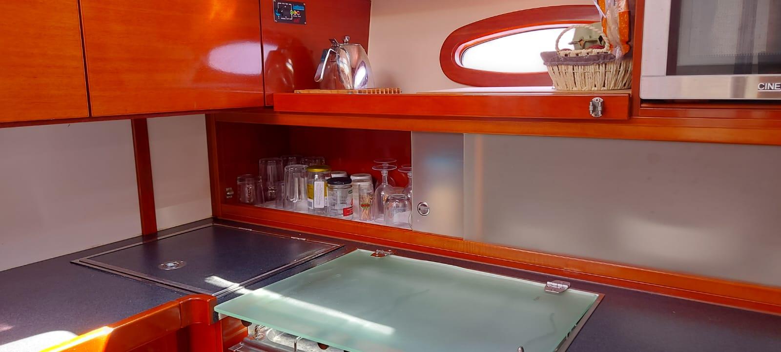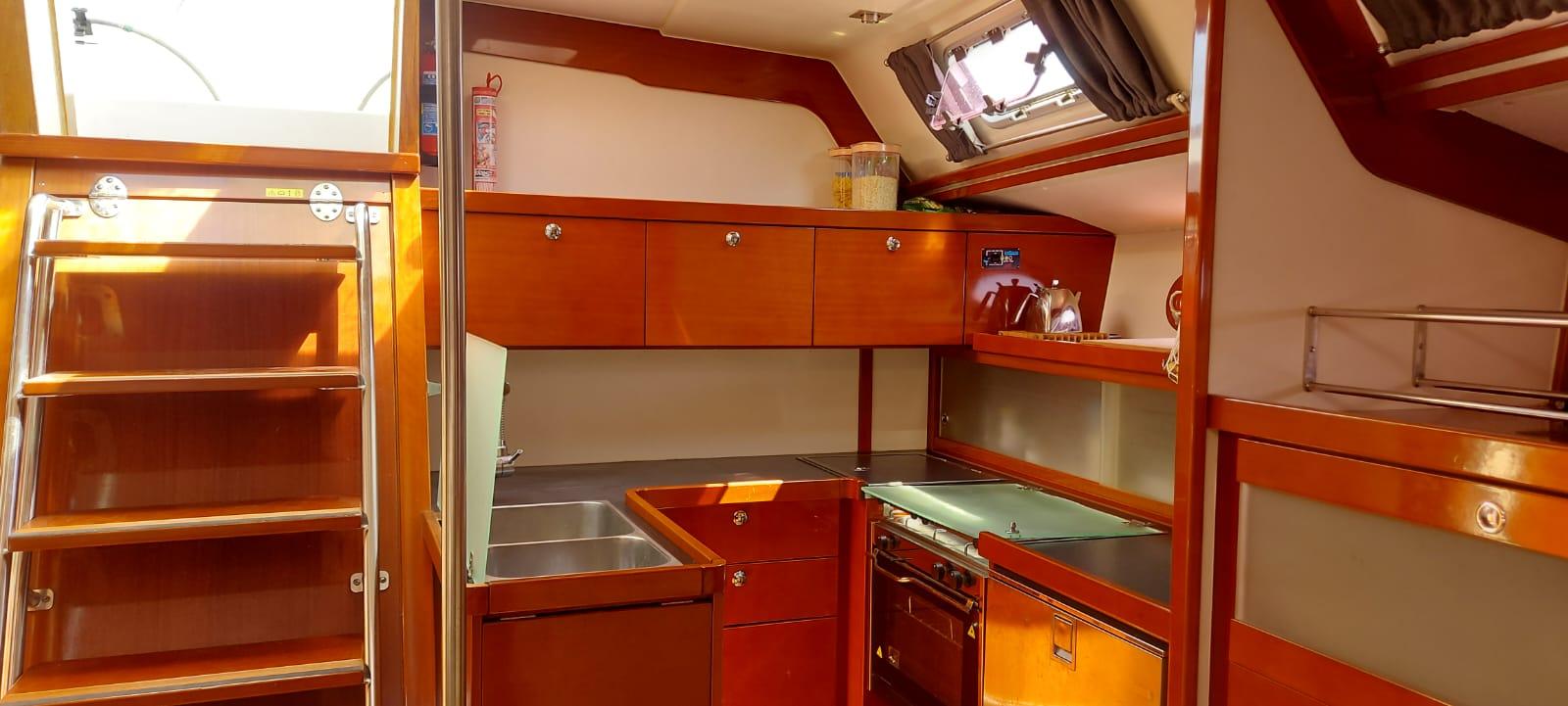 This is the sought-after two-cabin owner’s version, never chartered and always privately owned. The interior is warm and inviting, finished in cherry wood joinery with white panelling and cream leather upholstery. She benefits from significant upgrades in 2025, including new canvas work, solar power, and systems servicing, making her a well-equipped and reliable choice for extended Mediterranean cruising.