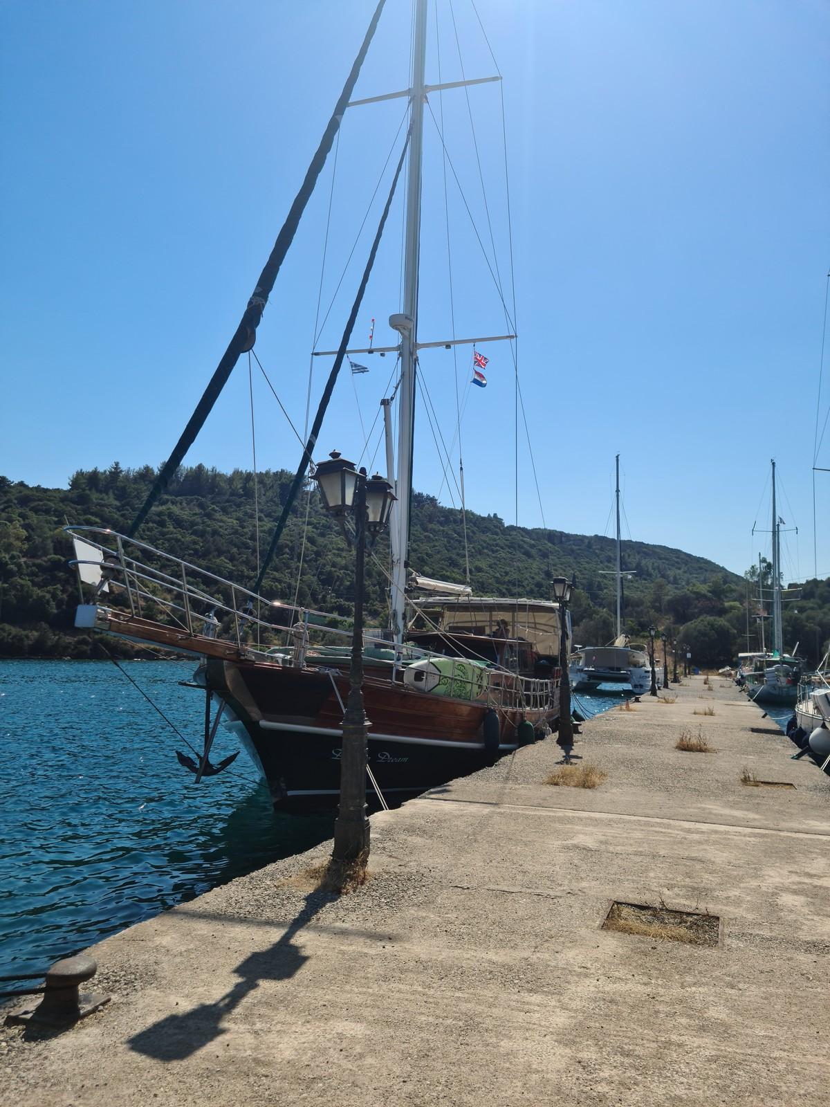 Dare to Dream is an 18-metre traditional sailing gulet, built in 2009 and refitted in 2011. With a beam of 5.15m and a draft of 2.4m, she offers a spacious and comfortable experience on the water. The gulet can accommodate up to 4 guests in two air-conditioned, en-suite cabins, making her an excellent choice for both private use and exclusive charter operations. She features a traditional wooden exterior with an elegant and inviting deck space, equipped for sunbathing, snorkeling, and fishing.