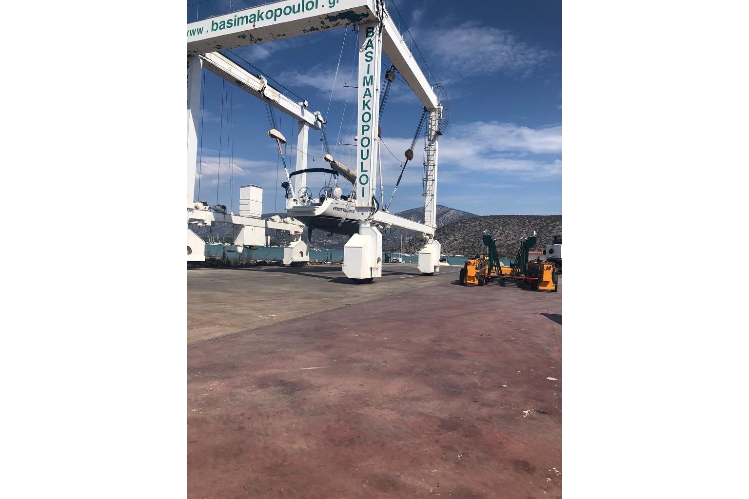 • Carbon gangway, teak cockpit table, folding bikes, paddleboard