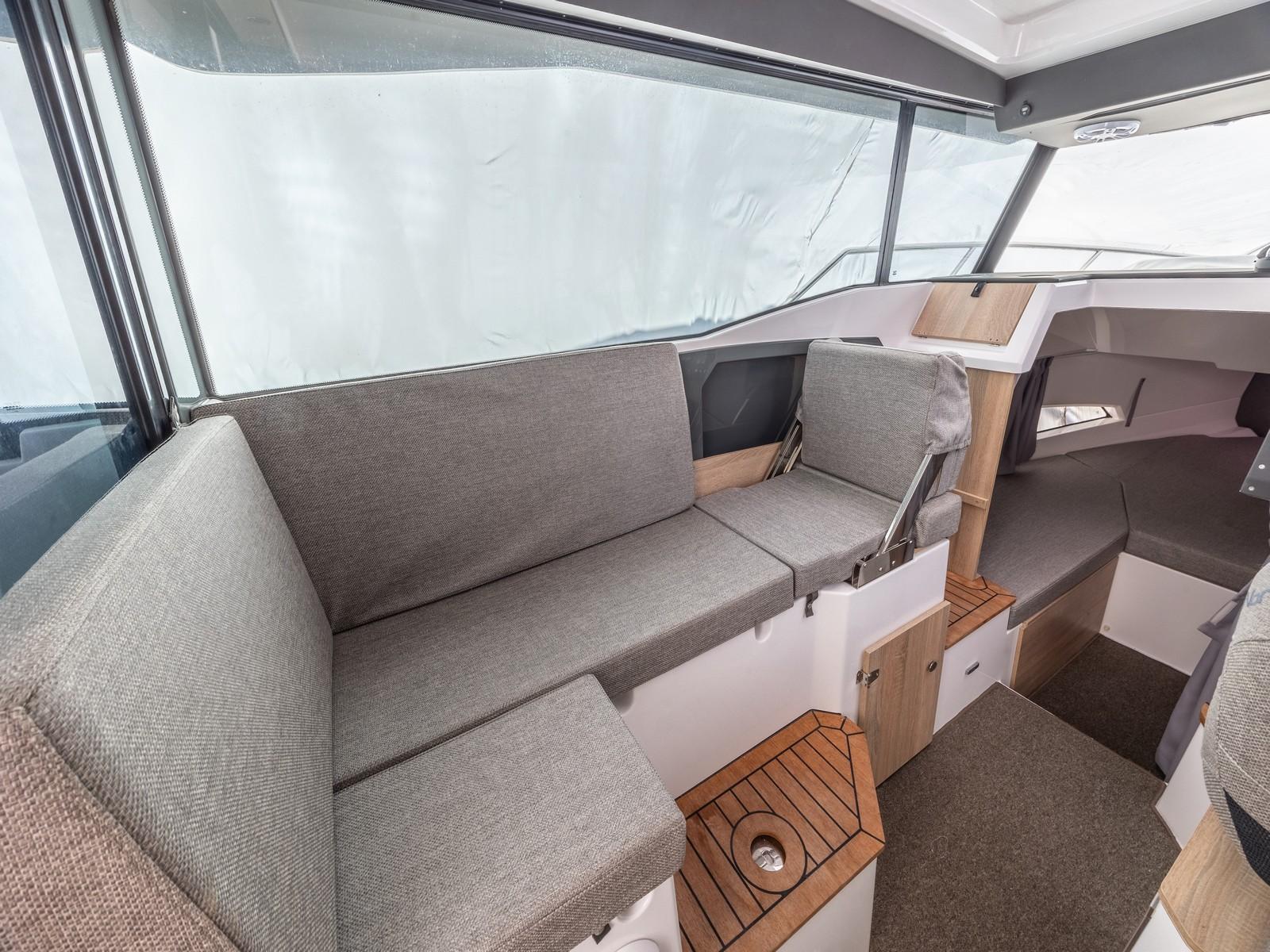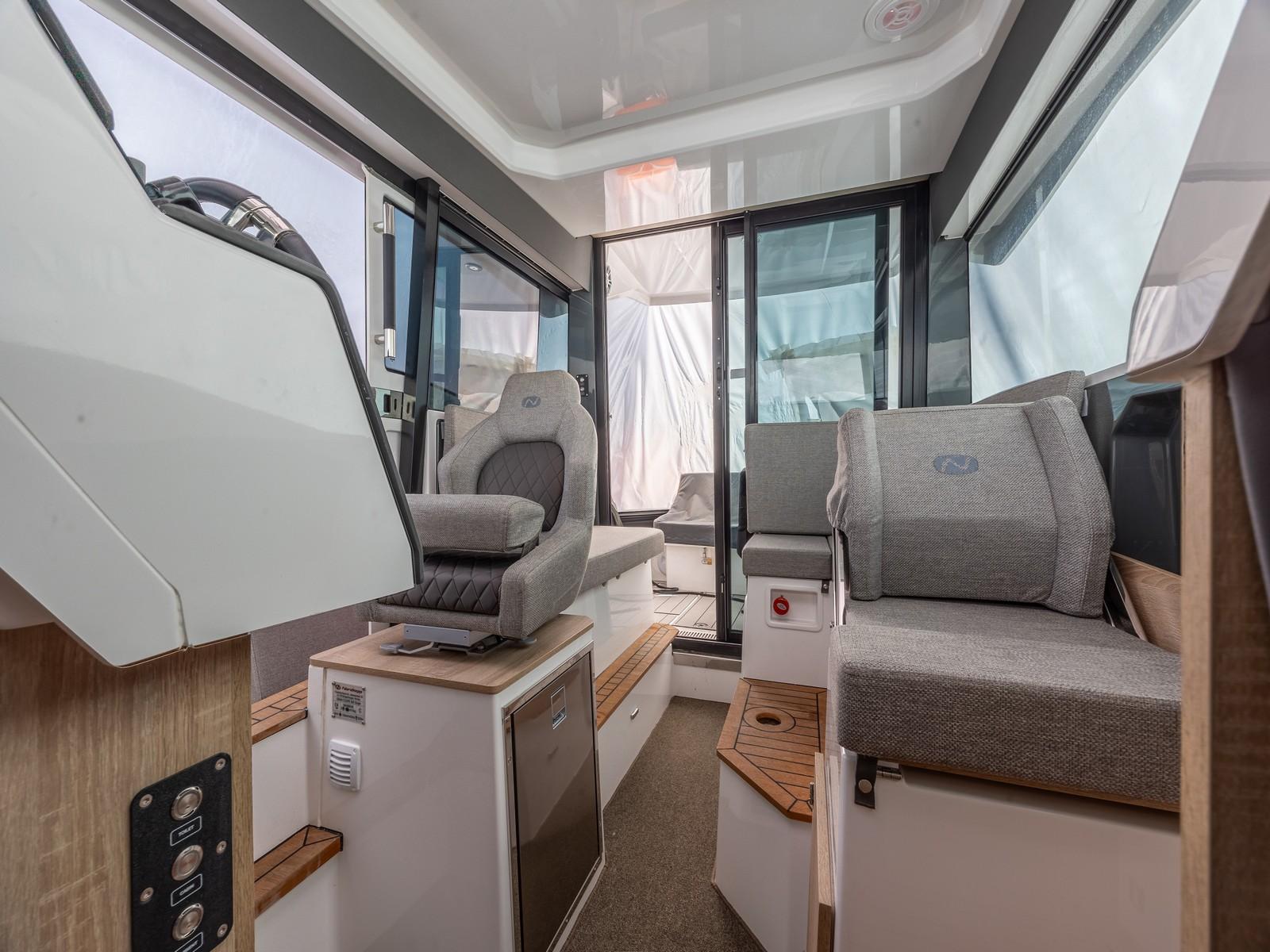 Introducing the 2023 Nordkapp Gran Coupe 905, a superb Norwegian boat designed for year-round enjoyment. Inside, you’ll find a spacious and thoughtfully designed layout, including a generous forward cabin with its own enclosed toilet. Outside, there are inviting sun lounge areas located at both the bow and stern of the boat. The cockpit seats are easily removable, creating ample space for various activities. Wide passageways with sturdy handles ensure safe and comfortable navigation throughout the vessel.