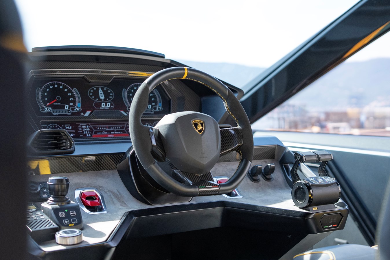 Lamborghini Performance on Water. Delivered in 2023, M/Y FAST TOY is the ultimate fusion of Lamborghini’s speed and luxury yachting. Powered by twin MAN V12 – 2000HP engines, she reaches an exhilarating 60 knots, with a lightweight carbon fiber build ensuring agility at just 24 tons for 63 feet.
